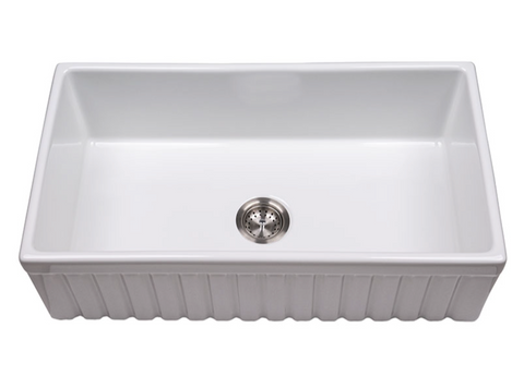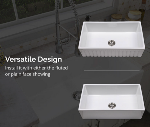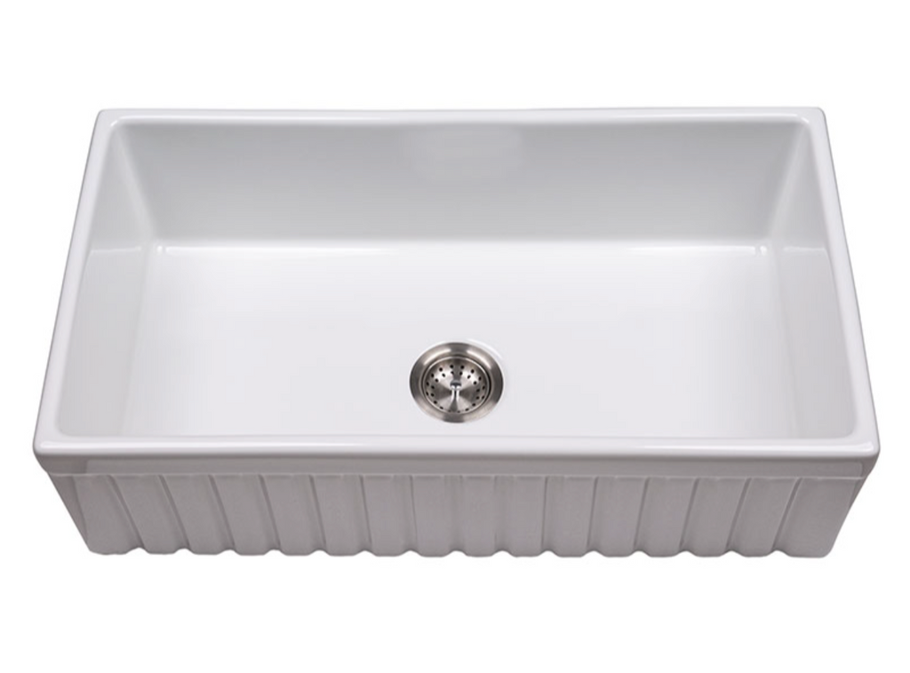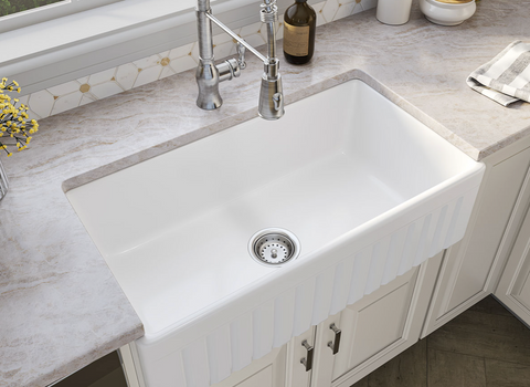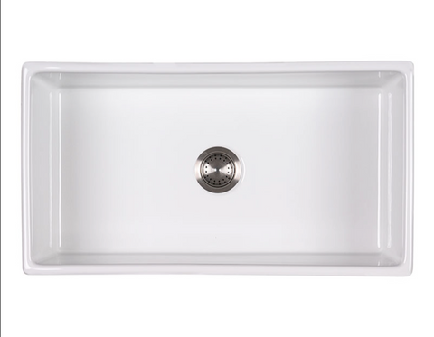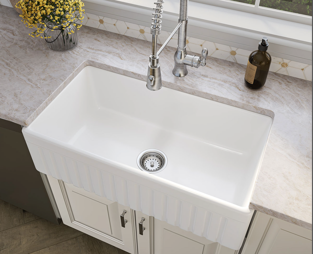 This generously sized fireclay single basin undermount sink gives your kitchen an upscale signature look. The perfect complement to coastal, farmhouse, or almost any kitchen decor, it features an apron and flat basin for a fresh yet classic style. This sink has one 8.5” deep basin that can accommodate oversized cookware such as steam pots, baking sheets, and stacks of dishes with ease. This classic farmhouse sink is durable, easy to clean, and a pleasure to use.